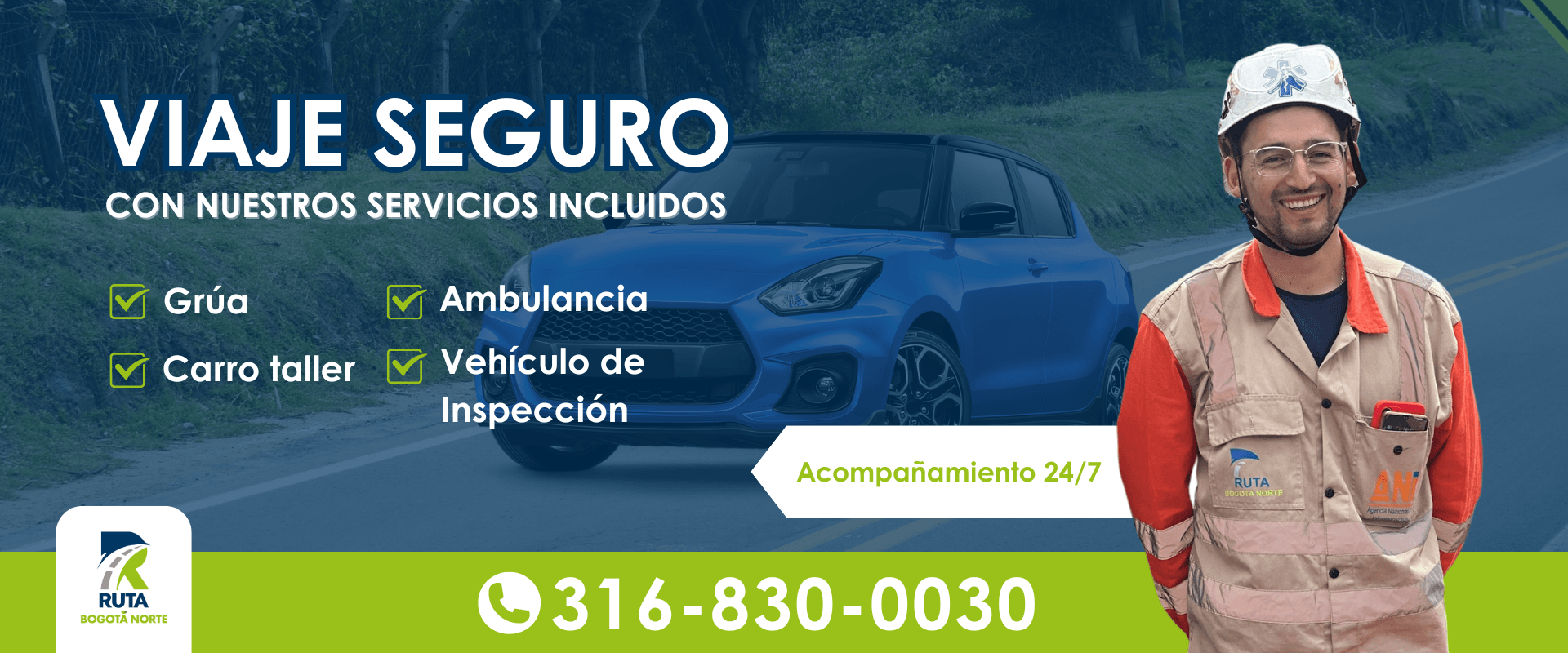 El área operativa de la concesionaria Ruta Bogotá Norte, en sus tres corredores, brinda y garantiza las medidas de seguridad y acompañamiento a los usuarios de la vía ante cualquier eventualidad que sobre este se presente, de manera gratuita.