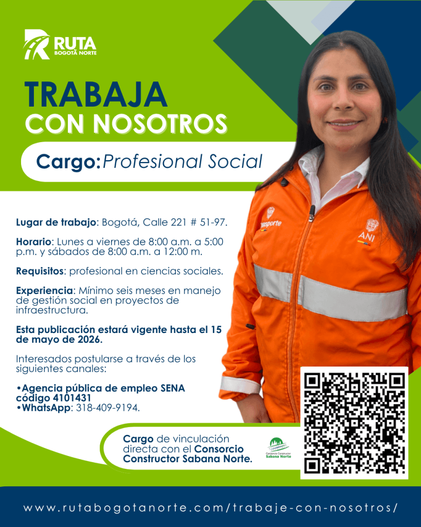 Sé parte de nuestro equipo y únete a la Concesionaria Ruta Bogotá Norte S.A.S.